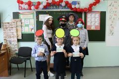 Седьмого октября для учащихся первого класса был подготовлен и проведён праздник «Посвящение в пешеходы». Главной целью его стало расширение представлений учащихся о правилах поведения на дороге, о значении дорожных знаков и сигналов светофора, развитие наблюдательности и внимания, воспитание культурного пешехода. Обучающиеся 7 класса выступили в разных ролях: Красной шапочки, Незнайки и полицейского. Праздник прошёл в игровой и познавательной форме.